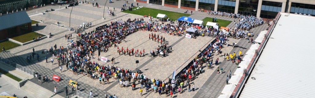 Spectators envelope the DrumLine Battle arena on Saturday, Aug. 9 in downtown Indianapolis. The morning of the 2014 DCI